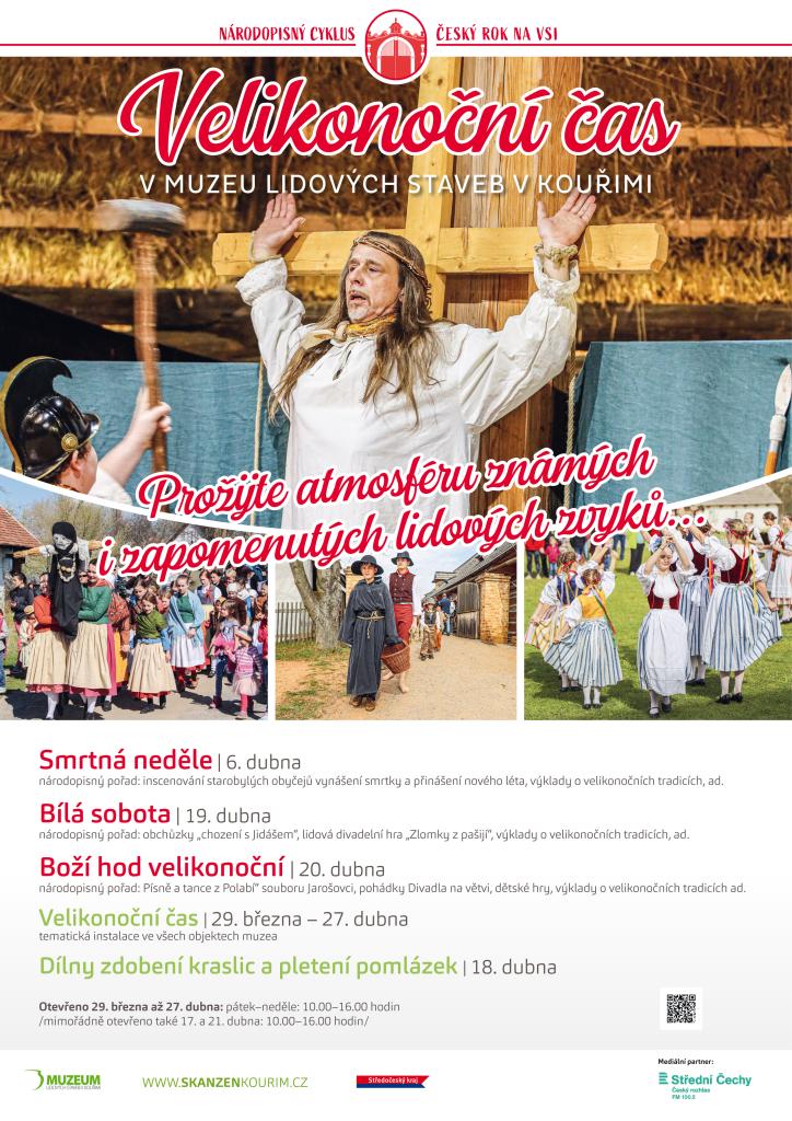 Od 29. března do 27. dubna se ve skanzenu koná tematická instalace na téma Velikonoce. Součástí programu jsou národopisné pořady jako inscenování obyčejů, divadelní hry a výklady o tradicích. Děti se mohou těšit na pohádky a dílny na zdobení kraslic. Otevřeno je pátek až neděle, s mimořádným otevřením i 17. a 21. dubna.
